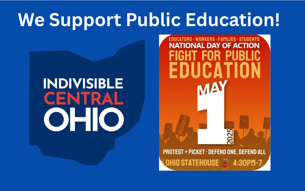 Indivisible Central Ohio members are meeting in front of the stairs on the State Street (south) side of the statehouse around 4:30pm and then we’ll walk around to the other side of the Statehouse to join the educators and support them on this National Day of Action in the Fight for Public Education.