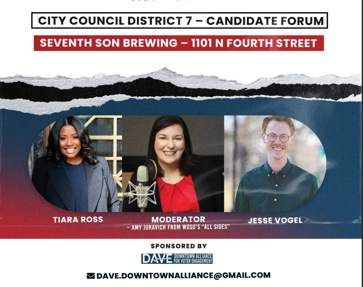 Wednesday, 10/8/2025: Candidate forum, 6:30-8pm, 1101 N 4th St, Columbus. Hear Columbus City Council Candidates Tiara Ross and Jesse Vogel discuss their views on the future of Columbus' 7th District. Moderated by Amy Juravich of WOSU's All Sides. Seats are first come first served. Register HERE.