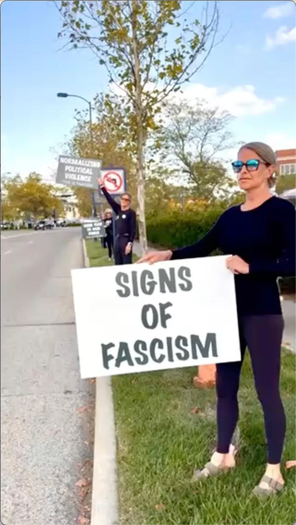 Our Signs of Fascism have appeared at several locations in central Ohio recently, and more events are scheduled. A video of the signs at an event posted to the Westerville Progressive Alliance’s public Facebook page has gone viral: as of yesterday morning it had 56K likes, 99K shares, and 7.2M views! Plus it’s surging on Instagram, Twitter, and TikTok. Wow! Congrats to the organizers!