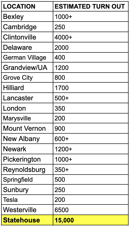 Every week there are about a dozen rallies and protests all over central Ohio! You can follow what’s happening in the Events section of our website, indivisible central ohio.org. Also check mobilize.us/indivisiblecentralohio/ for all our Indivisible Central Ohio events.