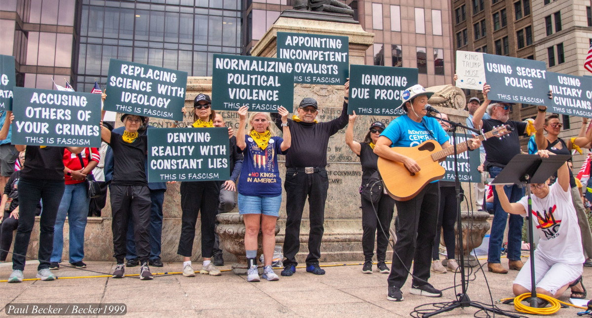 Special shout out to Meredith Benson, Greg Phelps, Michelle Lerner and the whole team that put together the No Kings Car Caravan. Their visits to the Hilliard, Clintonville, Grandview, German Village and Statehouse rallies brought a special mixture of raucous excitement, whimsy and gumption! Thank you!